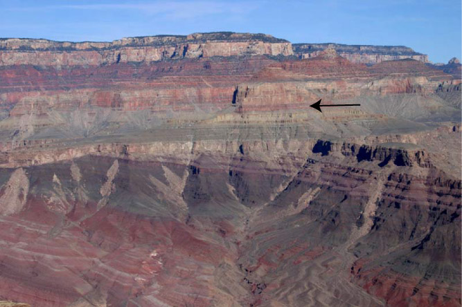 So what do we make of this photograph? It shows a sequence of sandstone, shale, and limestone sitting on top metamorphic rock (called the “Vishnu Schist”) in the Grand Canyon. The sandstone was deposited right on top the schist.