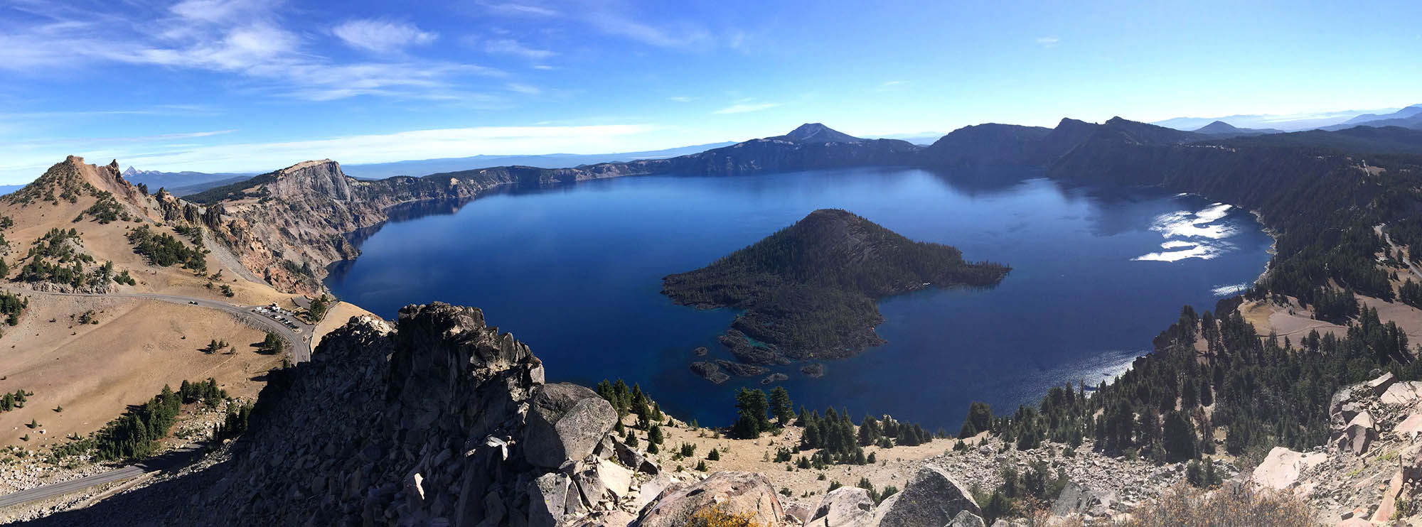 Crater Lake occupies the caldera of Mt. Mazama, which erupted catastrophically some 7700 years ago.